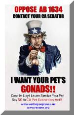 REXANO joins other pro animal groups in opposing AB 1634, so called ‘California Healthy Pets Act’. June 11, 2007 FREE posters